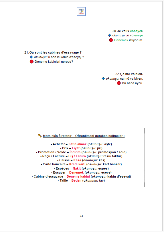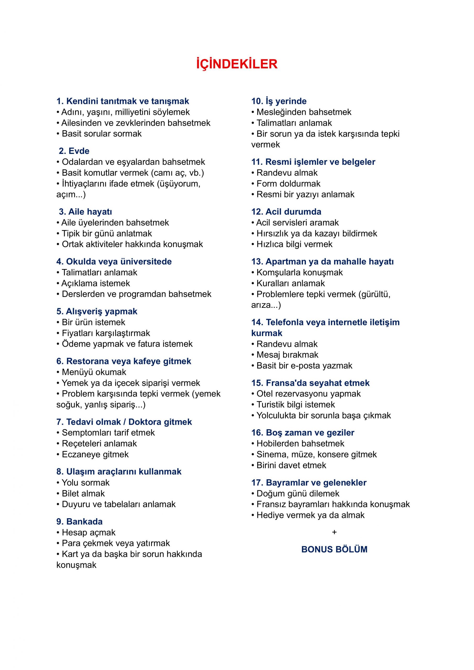 125 sayfa boyunca günlük hayatta, evde, işte, alışverişte, resmî kurumda, bankada ve daha nice durumlarda seni kurtaracak tam 340 hazır cümle + Bonus bilgiler !